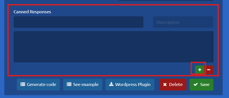2. Choose the specific campaign you want to configure. Scroll down to the bottom of the settings page to locate the Canned Responses section, then click the + (Plus) icon to add a new response.