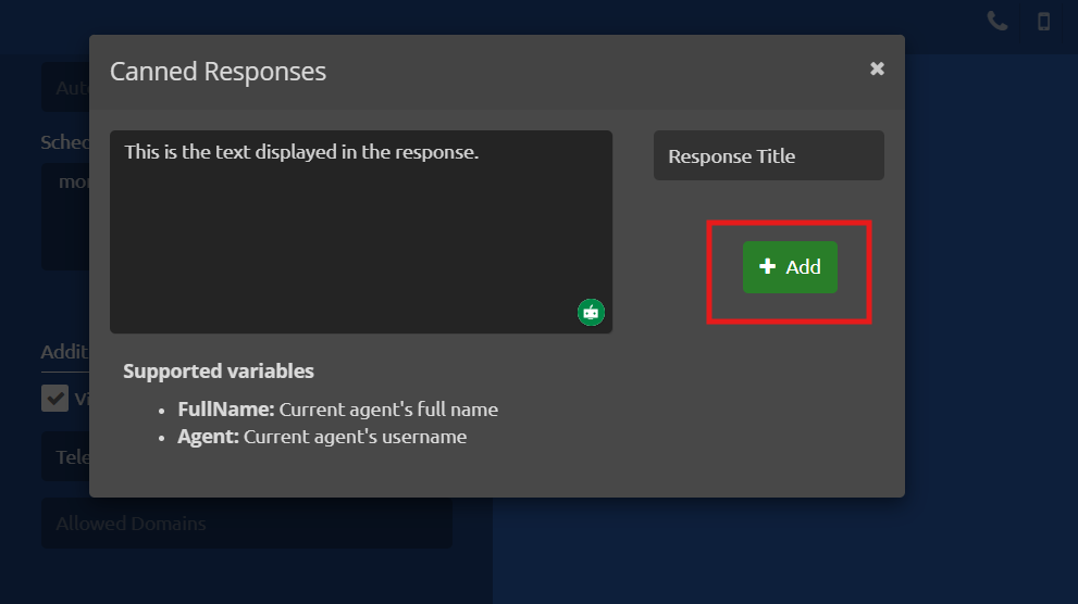 3. A dialog box will appear. Enter a Title and the Text for your response, then click Add.